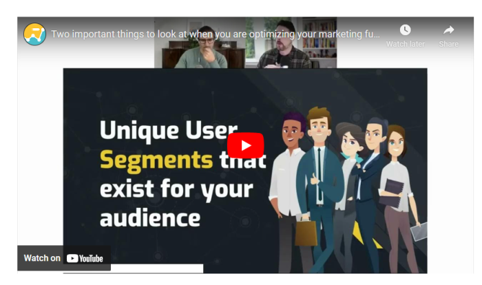 Listen as Keith shares a real-life example from #SegMetrics of a big hole in a funnel that was converting at 50%. Part 2 – Identifying drops offs.